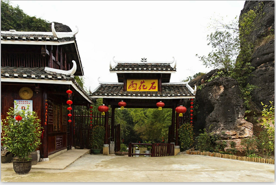 The picture shows the gate of Yuhua Stone Scenic Area < br />.